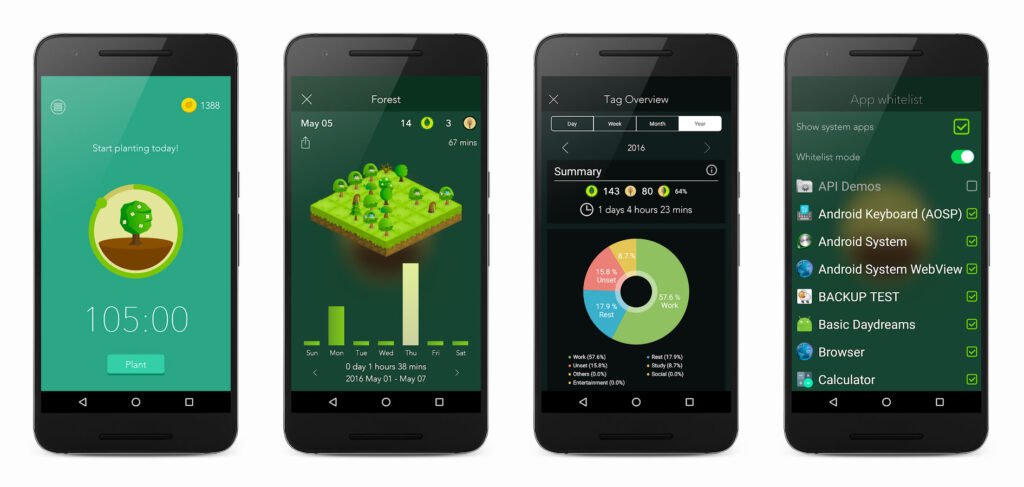 • Forest (app que incentiva foco ao “plantar” árvores virtuais)